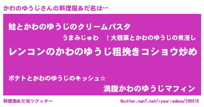 | ヘコむあだ名 | 『かわのゆうじ(苦笑)』『酢こんぶ』 |