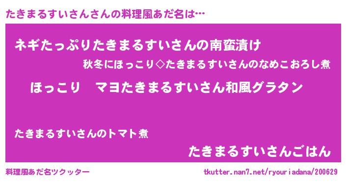 | 男性向けラノベタイトル風あだ名 | 『この素晴らしい世界にたきまるすいさんを!』 |