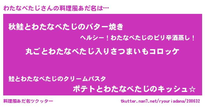 | 女子向けラノベタイトル風あだ名 | 『乙女ゲームの破滅フラグしかない悪役わたなべたじに転生してしまった…』 |