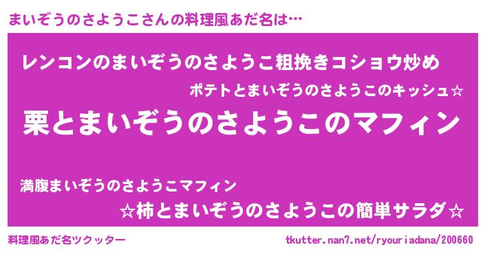 | ヘコむあだ名 | 『まいを』『まいぞうのさようこ(爆)』 |