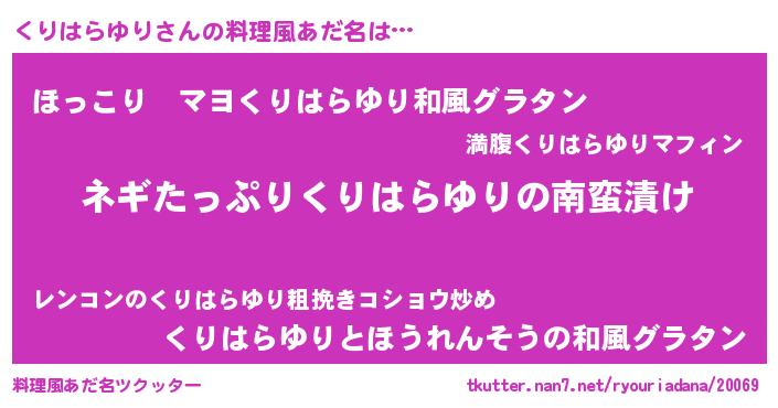 | ヘコむあだ名 | 『くりっふぃ~』『くりはらゆり(震え声)』 |