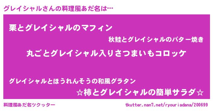 | 意味不明あだ名 | 『住所不定無職グレイシャル(86歳)』 |