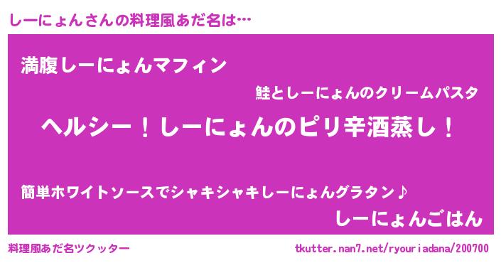 | 意味不明あだ名 | 『自称しーにょん』『永久保存しーにょん』 |