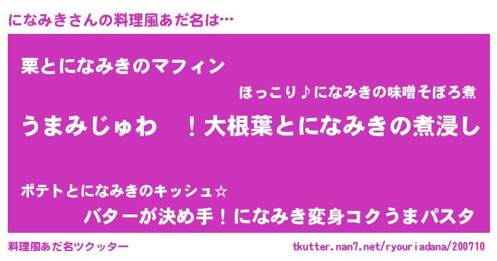 | 意味不明あだ名 | 『になみきフォーエバー』 |