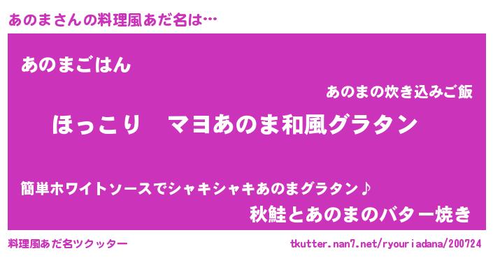 | 男性向けラノベタイトル風あだ名 | 『この素晴らしい世界にあのまを!』 |