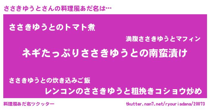 | ヘコむあだ名 | 『ささもー』『ささきゆうと(遠い目)』 |