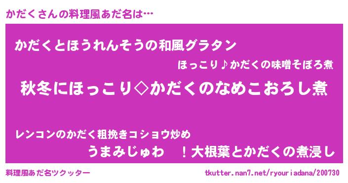 | ピコ太郎風あだ名 | 『ピカ次郎』『カコ三郎』『カダ一郎』 |