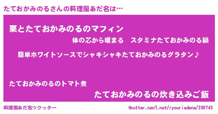 | 意味不明あだ名 | 『とにかく怪しいたておかみのる』 |