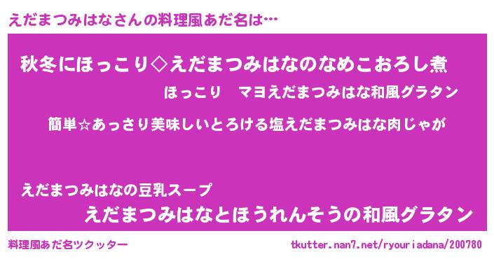 | ヘコむあだ名 | 『えだまつみはな(震え声)』『えだを』 |