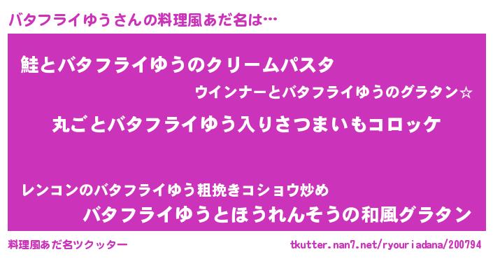 | 欧米人風あだ名 | 『ダレノガレバタフライゆう』 |