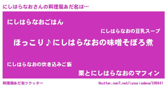 | 胡散臭い通販商品みたいなあだ名 | 『必ず成功するブレスレット…その名も「にしはらなお」』 |