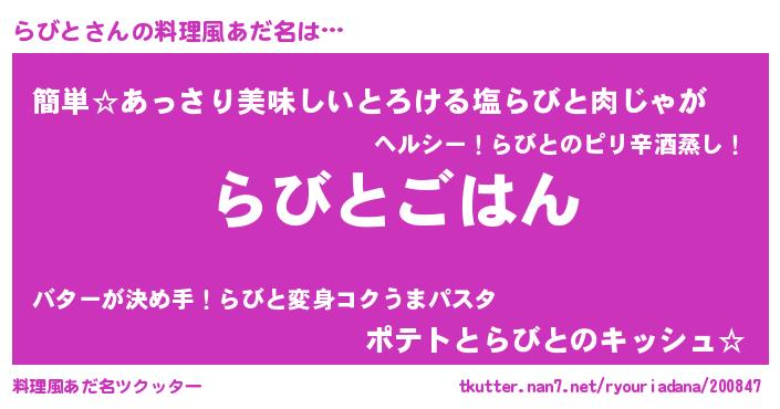 | 胡散臭い通販商品みたいなあだ名 | 『来世でも幸せになれる健康食品…その名も「らびと」』 |