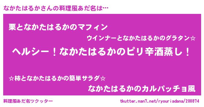 | 男性向けラノベタイトル風あだ名 | 『Re:なかたはるかから始める異世界生活』 |