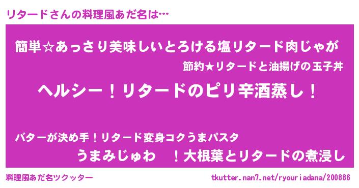 | 意味不明あだ名 | 『自称リタード』『永久保存リタード』 |