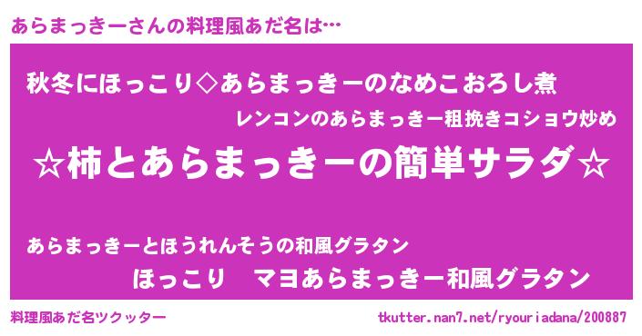 | 意味不明あだ名 | 『住所不定無職あらまっきー(53歳)』 |