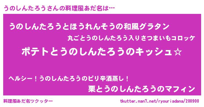| ヘコむあだ名 | 『うのぷりん』『うのしんたろう(苦笑)』 |