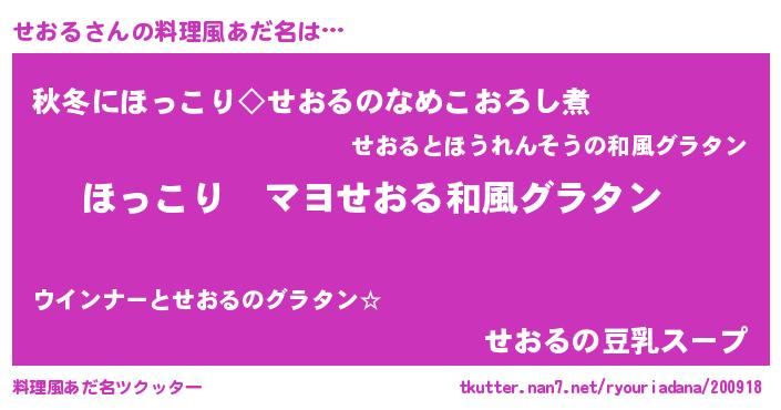 | 男性向けラノベタイトル風あだ名 | 『この素晴らしい世界にせおるを!』 |