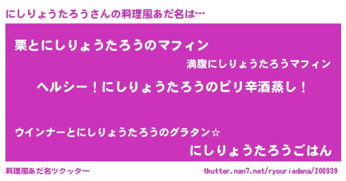 | 意味不明あだ名 | 『自称にしりょうたろう』 |