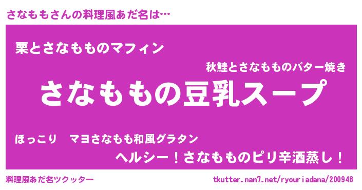 | 胡散臭い通販商品みたいなあだ名 | 『信頼と実績のサプリメント…その名も「さなもも」』 |