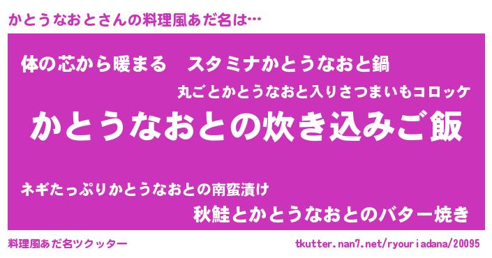 | ヘコむあだ名 | 『なまこ酢』『かとうなおと(笑)』 |