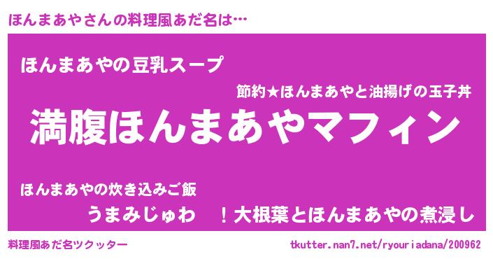 | 胡散臭い通販商品みたいなあだ名 | 『絶対に幸福をもたらす健康食品…その名も「ほんまあや」』 |