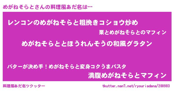 | 欧米人風あだ名 | 『トリンドルめがねそらと』 |
