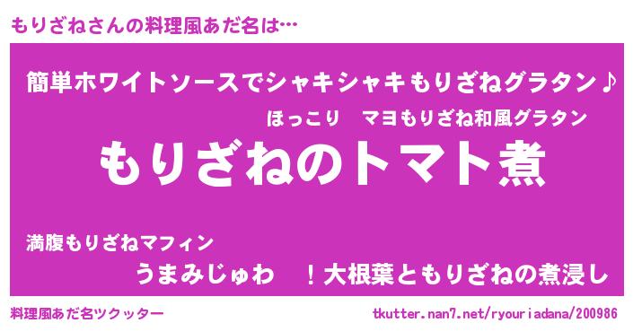 | 女子向けラノベタイトル風あだ名 | 『もりざね夫妻のなれそめ』 |
