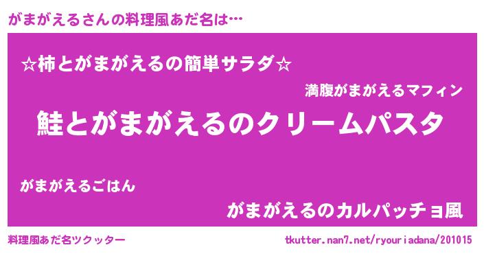 | 男性向けラノベタイトル風あだ名 | 『ノーゲーム・ノーガマガエル』 |