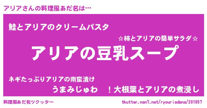 | 意味不明あだ名 | 『とにかく怪しいアリア』『自称アリア』 |