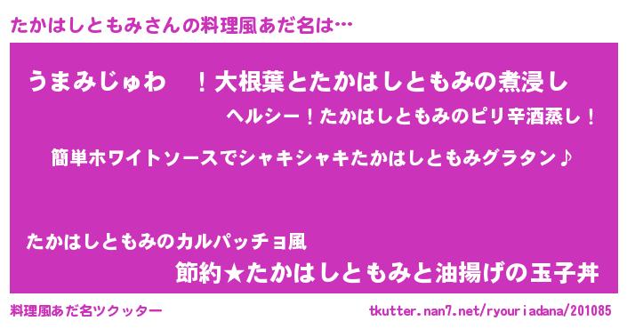 | 男性向けラノベタイトル風あだ名 | 『たかはしともみの嫁は女の子じゃないと思った?』 |