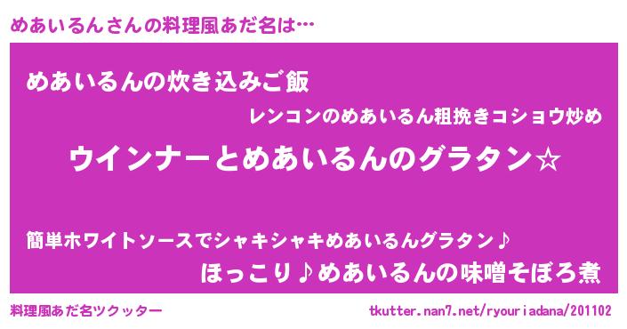 | 意味不明あだ名 | 『めあいるんフォーエバー』 |