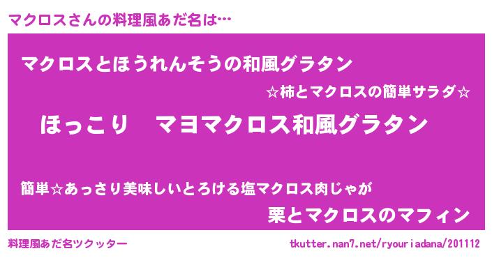 | 意味不明あだ名 | 『住所不定無職マクロス(43歳)』 |