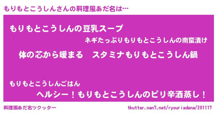 | ポケモン風あだ名 | 『モリモダネ』『ヒモリモトコウシン』 |