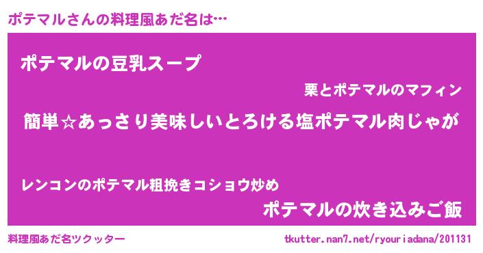 | 意味不明あだ名 | 『永久保存ポテマル』『自称ポテマル』 |