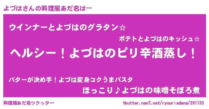 | ピコ太郎風あだ名 | 『ピヨ五郎』『ヨコ八郎』『ヨヅ太郎』 |