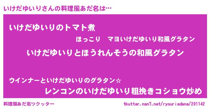 | 男性向けラノベタイトル風あだ名 | 『いけだゆいり~年齢イコール彼女いない歴の魔法使い~』 |