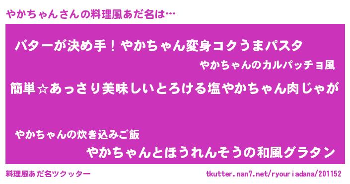 | ピコ太郎風あだ名 | 『ピコヤ郎』『ヤヤ太郎』『ヤカ四郎』 |