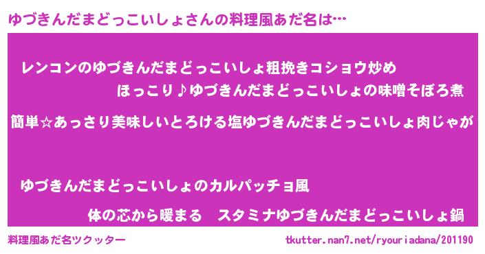 | 意味不明あだ名 | 『永久保存ゆづきんだまどっこいしょ』 |