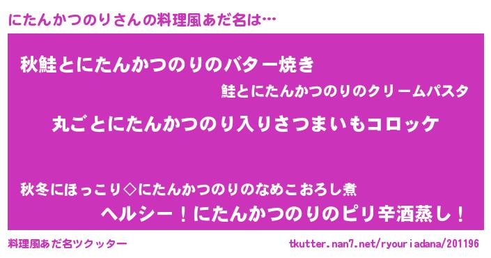 | 男性向けラノベタイトル風あだ名 | 『この素晴らしい世界ににたんかつのりを!』 |