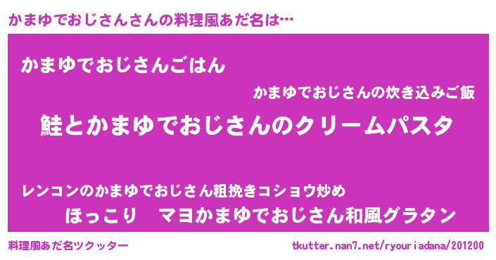 | ヘコむあだ名 | 『かまゆでおじさん(震え声)』『かまぷりん』 |