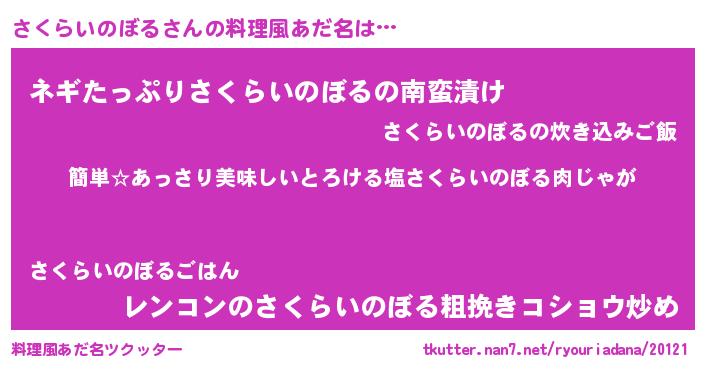 | 意味不明あだ名 | 『永久保存さくらいのぼる』 |