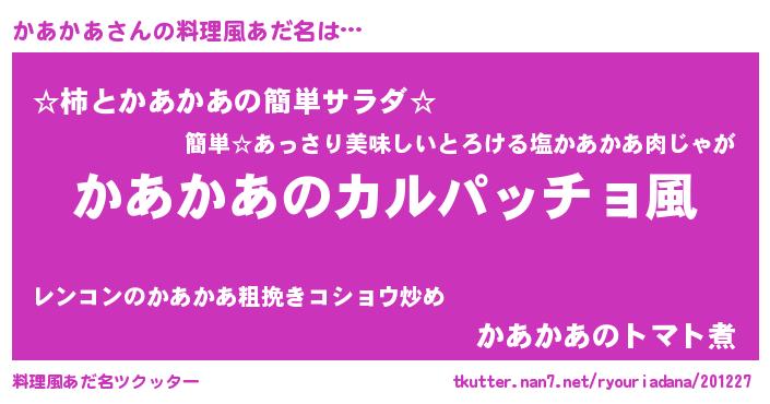 | 意味不明あだ名 | 『住所不定無職かあかあ(47歳)』 |
