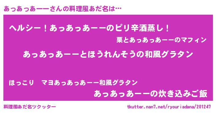 | ピコ太郎風あだ名 | 『アア太郎』『アッ五郎』『ピコア郎』 |