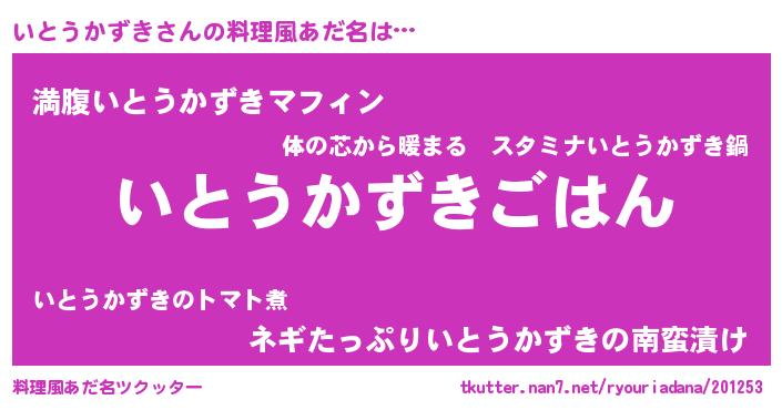 | 意味不明あだ名 | 『なめこ科いとうかずき属』 |