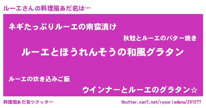 | 女子向けラノベタイトル風あだ名 | 『ルーエの玉の輿計画!』 |