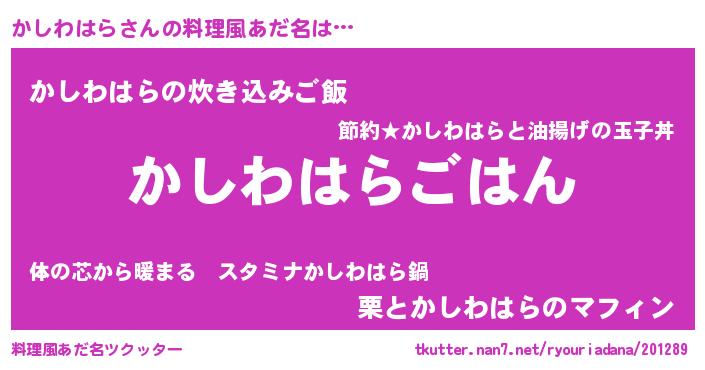 | 胡散臭い通販商品みたいなあだ名 | 『モテモテ間違いなし水晶球…その名も「かしわはら」』 |