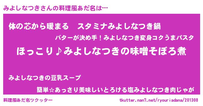 | 女子向けラノベタイトル風あだ名 | 『(仮)みよしなつきのやんごとなき事情』 |