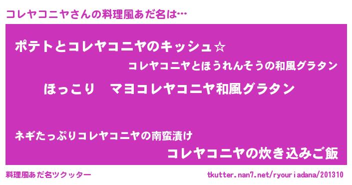 | 男性向けラノベタイトル風あだ名 | 『この素晴らしい世界にコレヤコニヤを!』 |