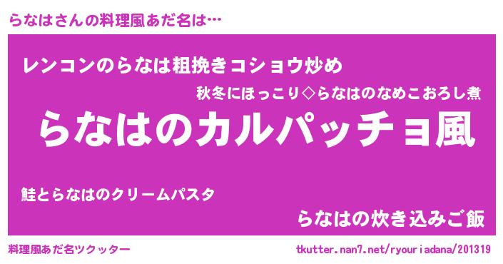 | 欧米人風あだ名 | 『ダレノガレらなは』『ダニエルらなは』 |