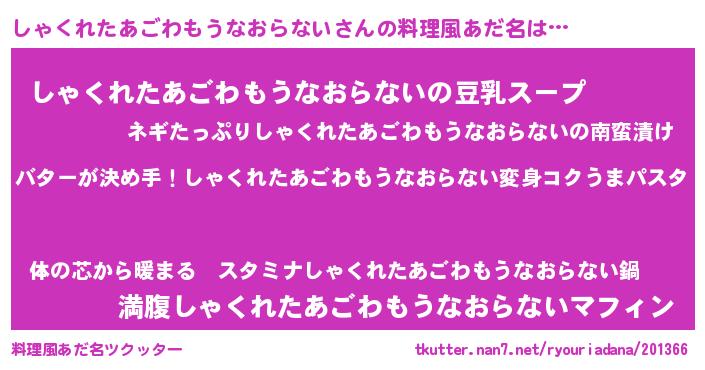 | 意味不明あだ名 | 『眠気覚ましガムしゃくれたあごわもうなおらない味』 |